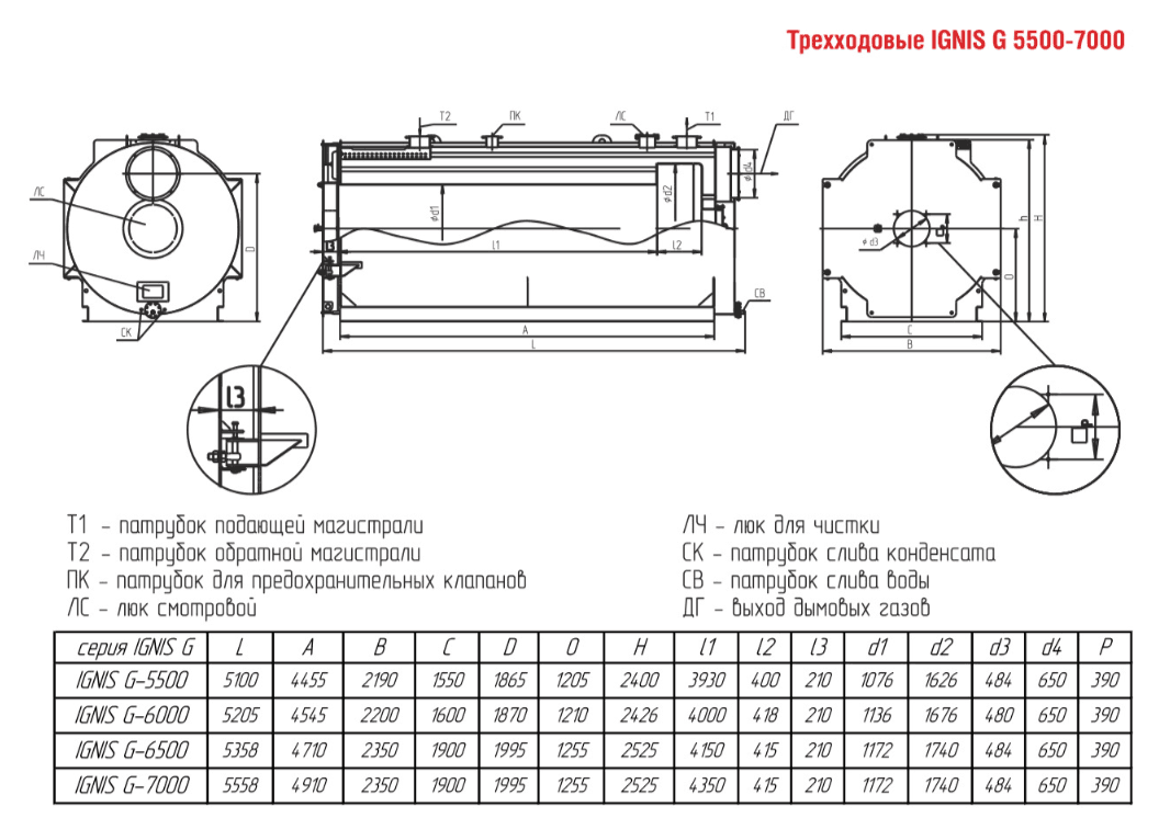 Технические характеристики водогрейного трёхходового котла ARCUS IGNIS G-5500